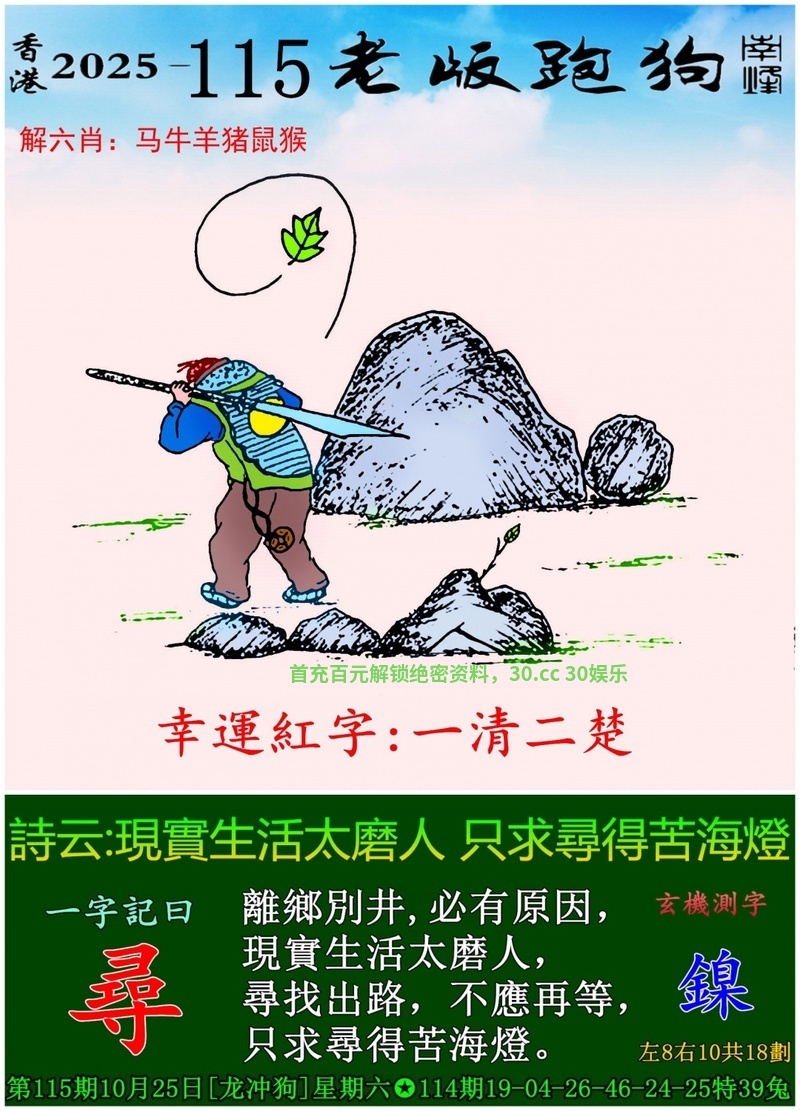 资料解释:前程似锦,前程解前肖-鼠牛虎兔龙蛇。